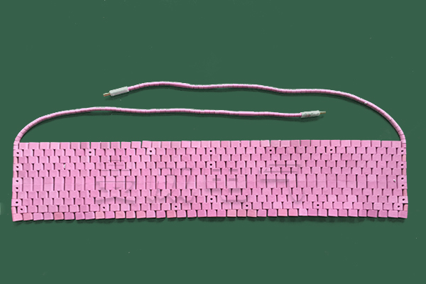 陶瓷加熱器國際上又稱柔性加熱器,它是選用鎳鉻合金絲纜,外套度氧化鋁陶瓷絕緣件制成履帶式或繩式加熱器以及其它產品形式。它能根據工件形狀、尺寸制作,可以拼接、彎曲、纏繞緊貼工件加熱,具有使用范圍廣,升溫速度快,熱利用率高,操作方便等特點。表面較高溫度可達1050℃。