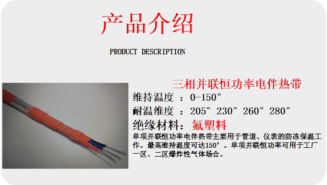 產品名稱:三相并聯恒功率電熱帶