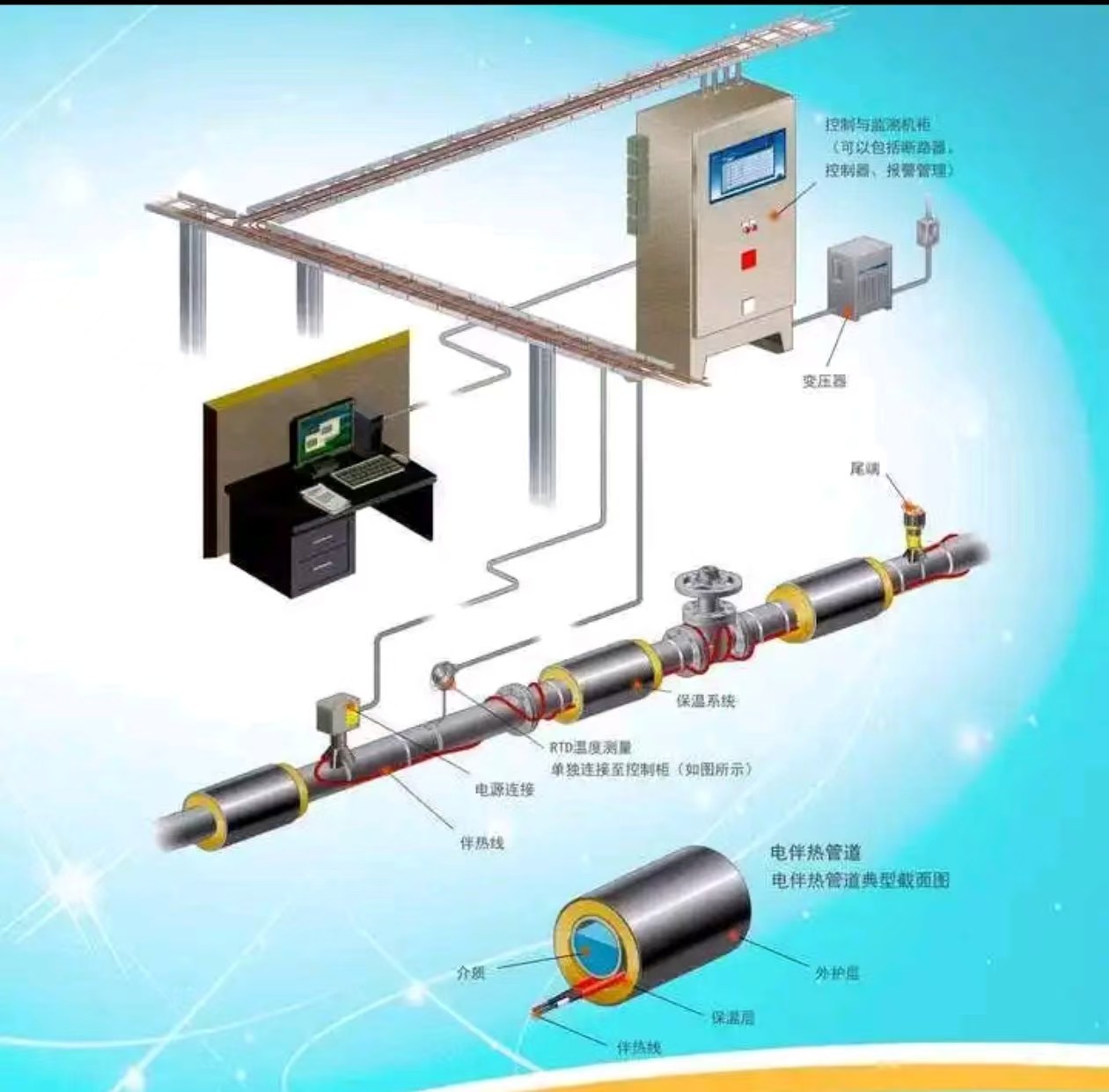 * **高溫暴露段:** 如果部分伴熱帶路徑暴露在高溫下(如靠近蒸汽管、爐體),該段需選用更高溫度等級伴熱帶或加裝**隔熱擋板**。