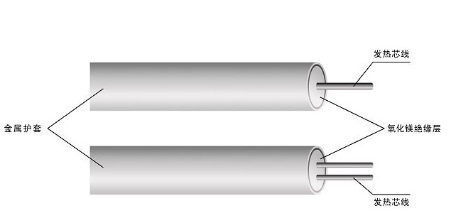 MI電纜是采用 單根或多根合金電熱絲作為發熱源、高純度、高溫、電熔結晶氧化鎂作導熱絕緣體,無縫連續不銹鋼或銅管作為護套,采用特殊生產工藝制造而成。有強腐蝕作用的場所可外加PE或低煙無鹵的外套。